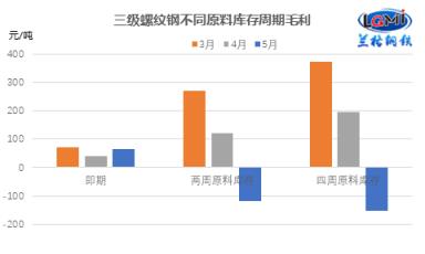 圖2 三級(jí)螺紋鋼不同原料庫存周期毛利水平變化