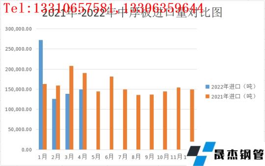 圖4 中厚板產(chǎn)品2021-2022年度進(jìn)口量對比圖