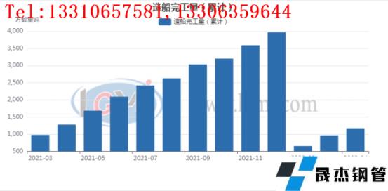 4月份國內(nèi)造船完工量累計為1171萬載重噸,環(huán)比3月份增加210萬載重噸。同比21年同減少約110萬載重噸。