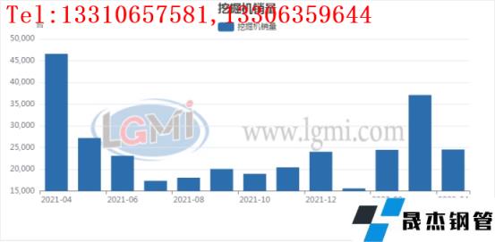 分行業(yè)來看,4月份國內(nèi)挖掘機(jī)銷量為24534臺,環(huán)比3月份減少約12551臺。同比21年同期減少約22038臺。