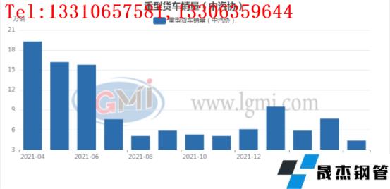 4月份國內(nèi)重型貨車銷量為4.4萬輛,環(huán)比3月份減少3.3萬輛。同比21年同期減少約14.9萬輛。