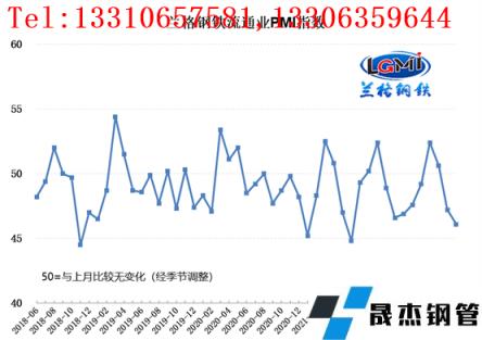 云商平臺統(tǒng)計發(fā)布的2022年6月份厚壁無縫鋼管流通業(yè)PMI總指數(shù)為46.1%,比上月下降1.1個百分點,在收縮區(qū)間內(nèi)持續(xù)下滑。從分類指數(shù)看,構(gòu)成厚壁無縫鋼管流通業(yè)
