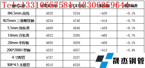 分品種來看,云商平臺監(jiān)測的8大厚壁鋼管品種10大城市均價顯示,6月底,各品種價格相比上月底均明顯下跌,其中,熱軋卷跌幅最大,為9.1%;無縫管跌幅最小,為5.2%;其他品種跌幅在8.1-8.7%之間(詳見表1)。