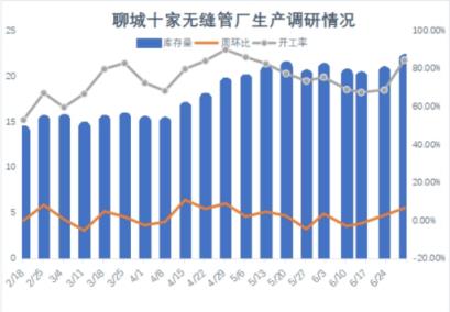圖3 2022年上半年全國(guó)無(wú)縫管總庫(kù)存及開(kāi)工率