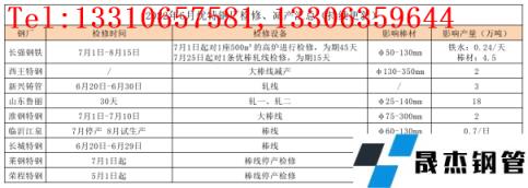 表1:6月份優(yōu)特?zé)o縫鋼管廠家檢修、減產(chǎn)匯總