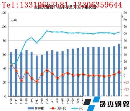 圖3 2022年上半年全國(guó)無(wú)縫管總庫(kù)存及開(kāi)工率