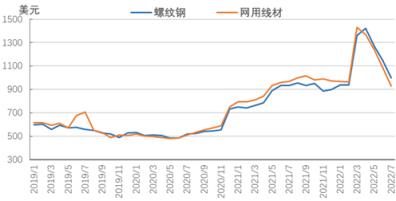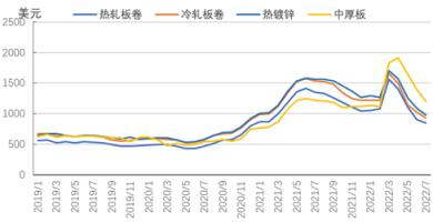 圖6 2019-2022年亞洲螺紋鋼價(jià)格走勢(shì)圖